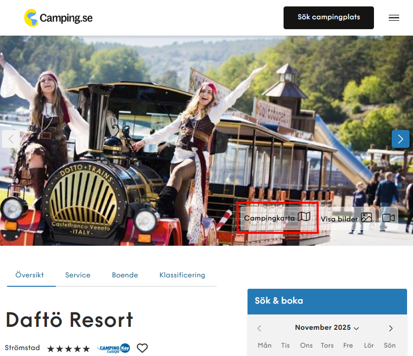 Var hittar jag områdeskarta för en campingplats?